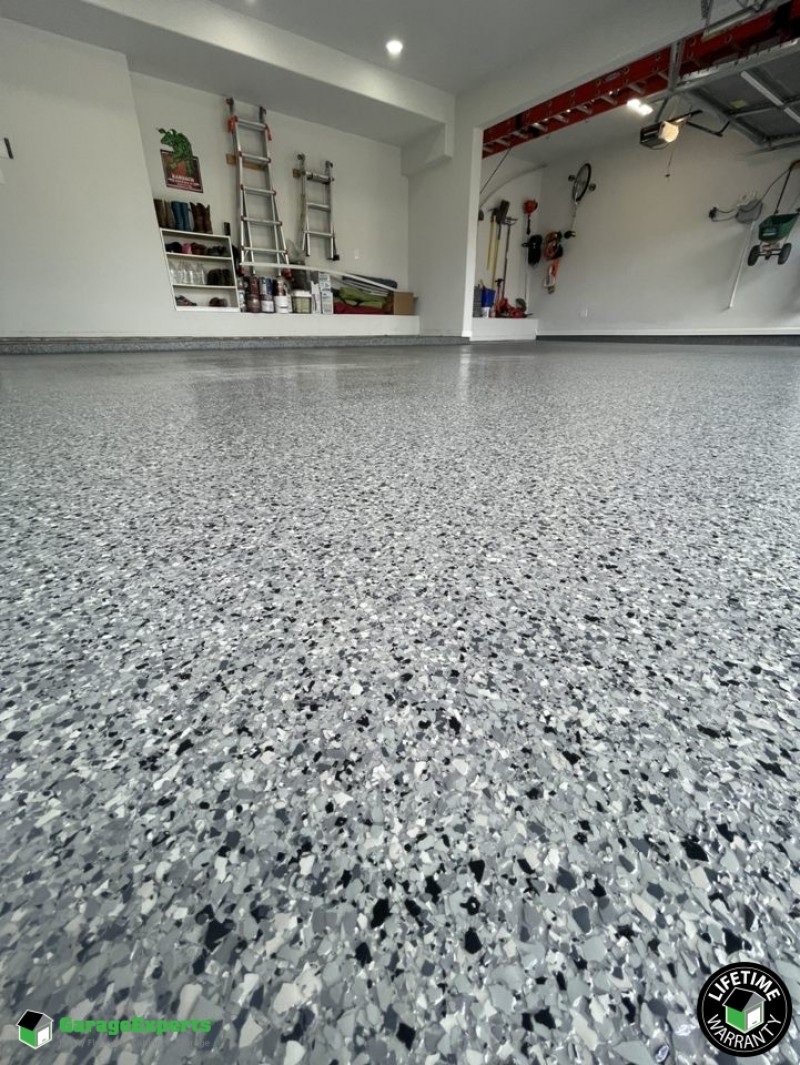 Full Broadcast Epoxy Flake Flooring By Integrity Floor Coatings Of Houston 832 576 8034 Epoxy Floor Epoxy Floor Coating Garage Floor Epoxy
